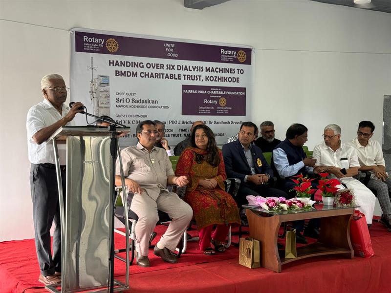The function was presided over by Rtn.P.S.Siraj Prethi,President ,Rotary Calicut Cyber City.Rtn.Vinita Venkatesh,president ,Rotary Chennai Anchorage adressed the gathering and Rtn.J.Sridhar,PDG gave the inaugural adress.Sri.VKC mammed koya ,Chairman of BMDMCT Received the machines for the Trust.